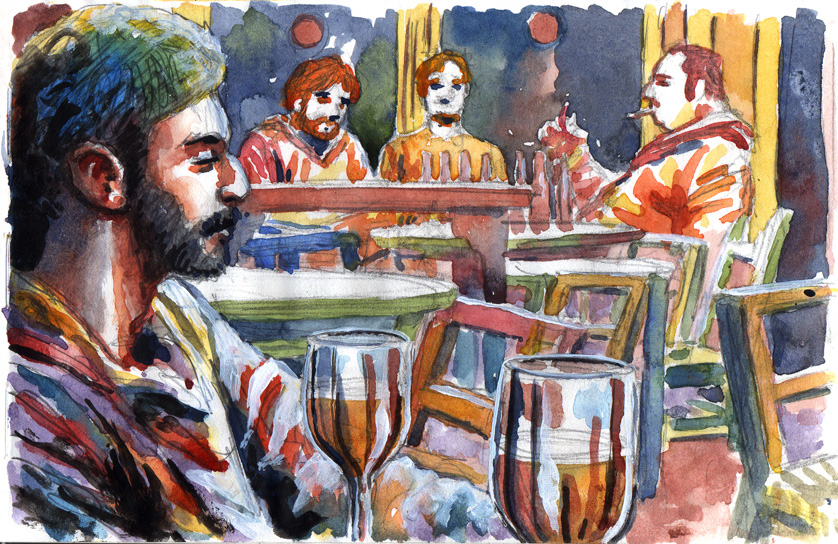 The Bar Closers · Los Cierra Bares October 27, 2012 | guillemmari Sketch – Graphite,watercolour & white acrylic on sketchbook. Boceto – Grafito, acuarela y acrílico blanco en bloc de dibujo. Share this: Click to share on Facebook (Opens in new window) Facebook Click to share on X (Opens in new window) X Click to share on Pinterest (Opens in new window) Pinterest Click to share on Tumblr (Opens in new window) Tumblr Click to share on LinkedIn (Opens in new window) LinkedIn Click to share on WhatsApp (Opens in new window) WhatsApp Click to share on Telegram (Opens in new window) Telegram More Click to email a link to a friend (Opens in new window) Email Click to share on Reddit (Opens in new window) Reddit Like Loading...