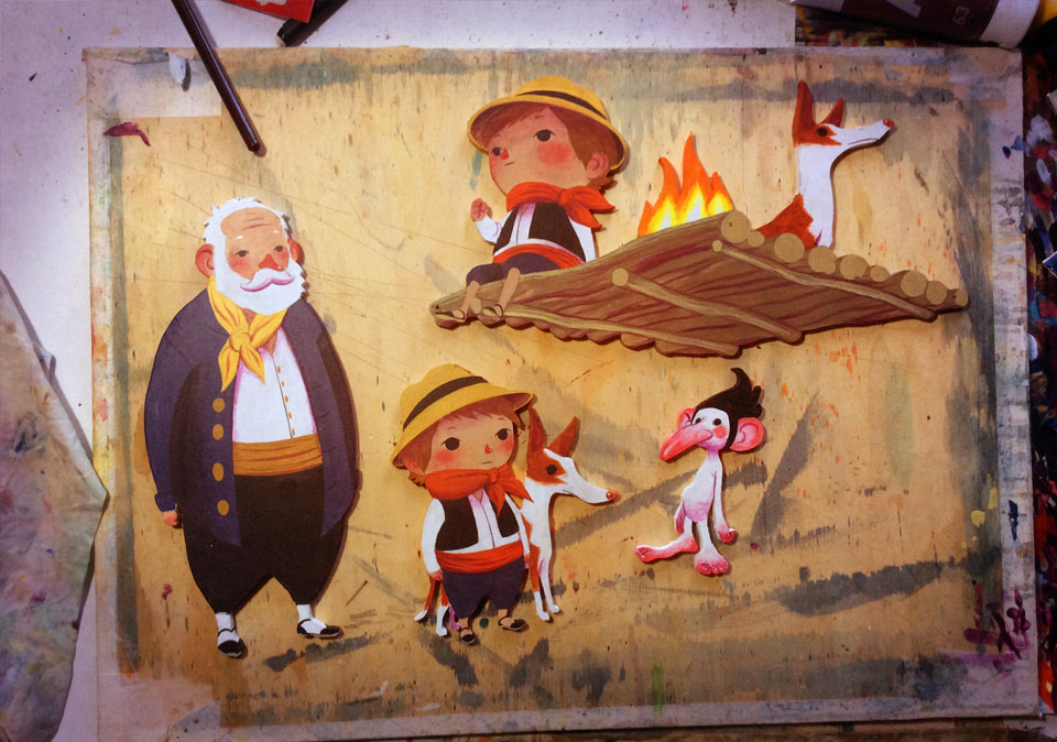 Recently I have been working on a quite interesting, fun and unusual assignment. Basically, I was asked to design and illustrate the backgrounds and characters for a children’s puppet show by Comica Espectacles, a theater and pedagogical spectacles company. The play would be something between a puppet show and a storyteller show, to be more accurate.